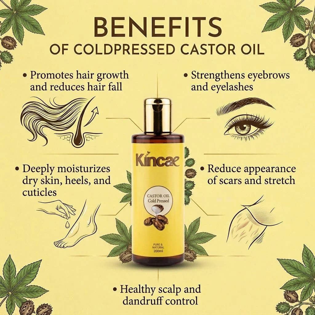 Promotes Hair Growth | Reduces Hair fall | Strengthens eyebrows and eyelashes | Deeply moisturizes dry skin, heels, and cuticles | Reduce appearance of scars and stretch marks |Healthy scalp and dandruff control