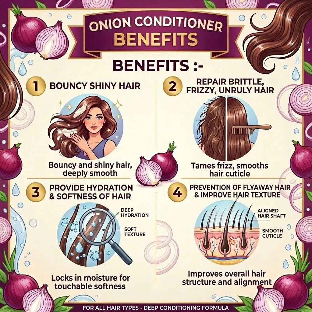 Dm Water, Disodium EDTA, Glycerin, Propylene Glycol, Cetostearyl Alcohol, Isopropyl Myristate, Caprylic/Capric Triglyceride, Behentrimonium Methosulfate, Cetrimonium Chloride, Shea Butter, Guar Hydroxypropyltrimonium Chloride, Polyquaternium-10, ONION EXTRACT Glyceryl Stearate Se, Ethylene Glycol Monostearate, Phenoxyethanol (And) Ethylhexylglycerin, , Butylated Hydroxytoluene, Vitamin E, Triethanolamine, Fragrance.