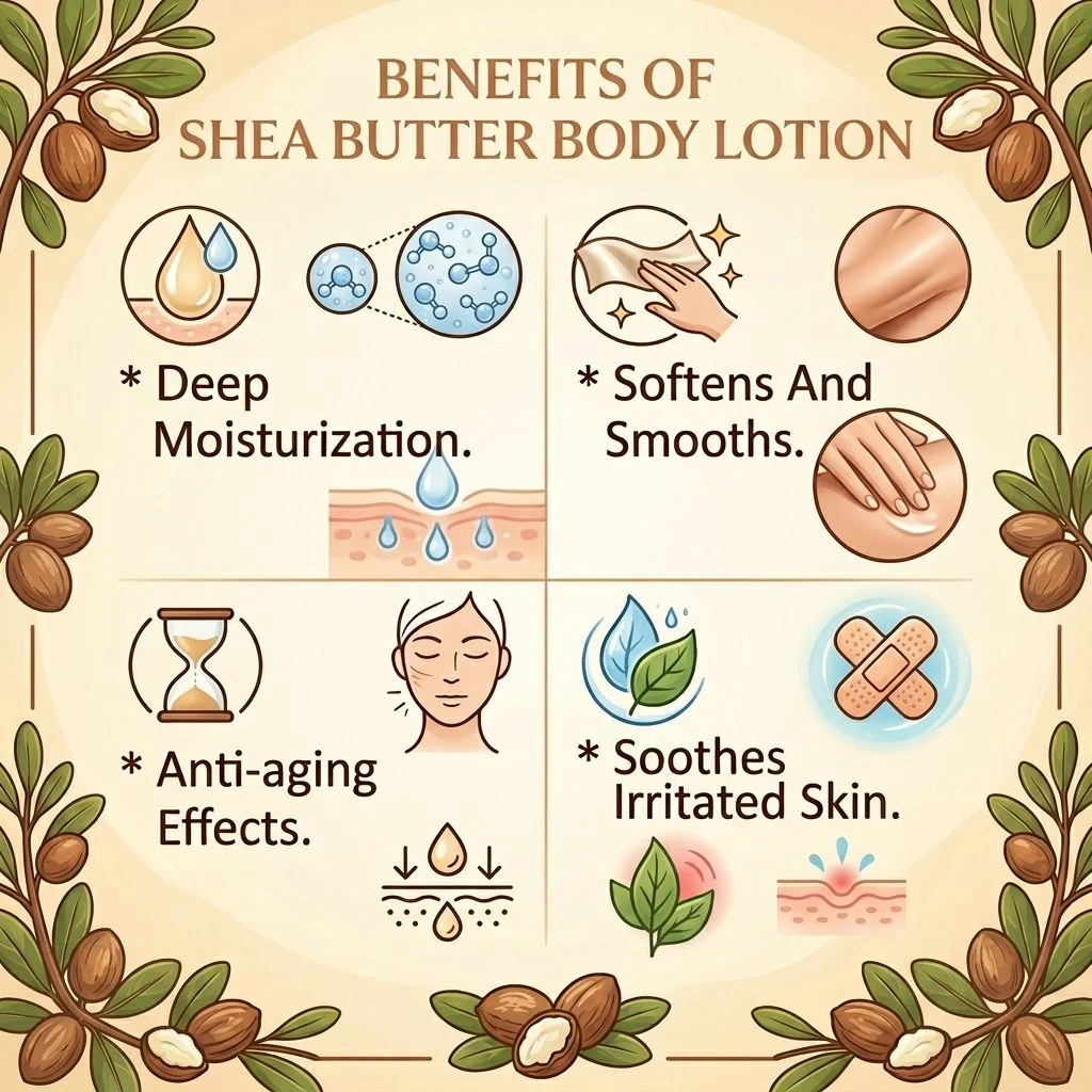 * Deep Moisturization. * Softens And Smooths. * Anti-aging Effects. * Soothes Irritated Skin.