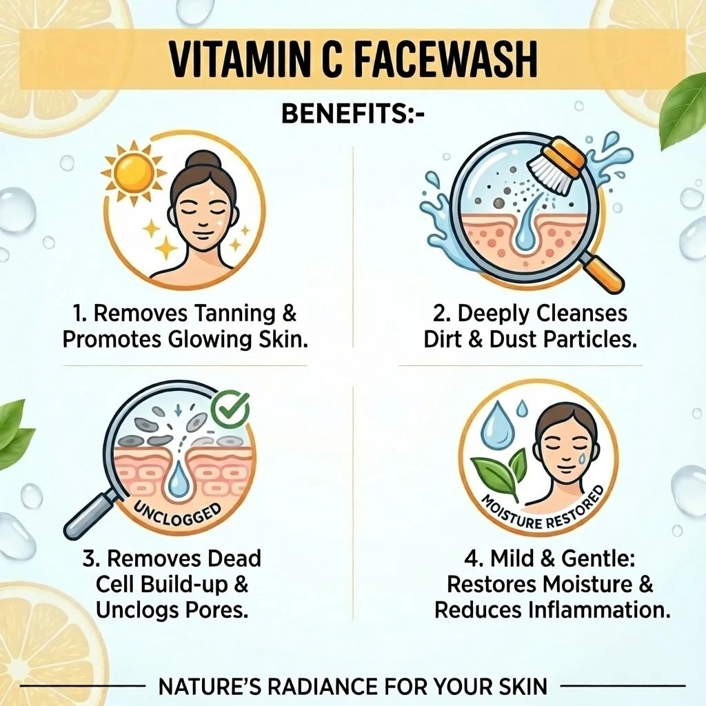 Remove Tanning From The Face & Promote Skin Glowing, Clean All Dirt, Dust Particles From The Face, Removes Dead Cell Build-up & Unclogs Pores, A Mild, Gentle Cleanser That Restores Moisture And Reduces Inflammation.